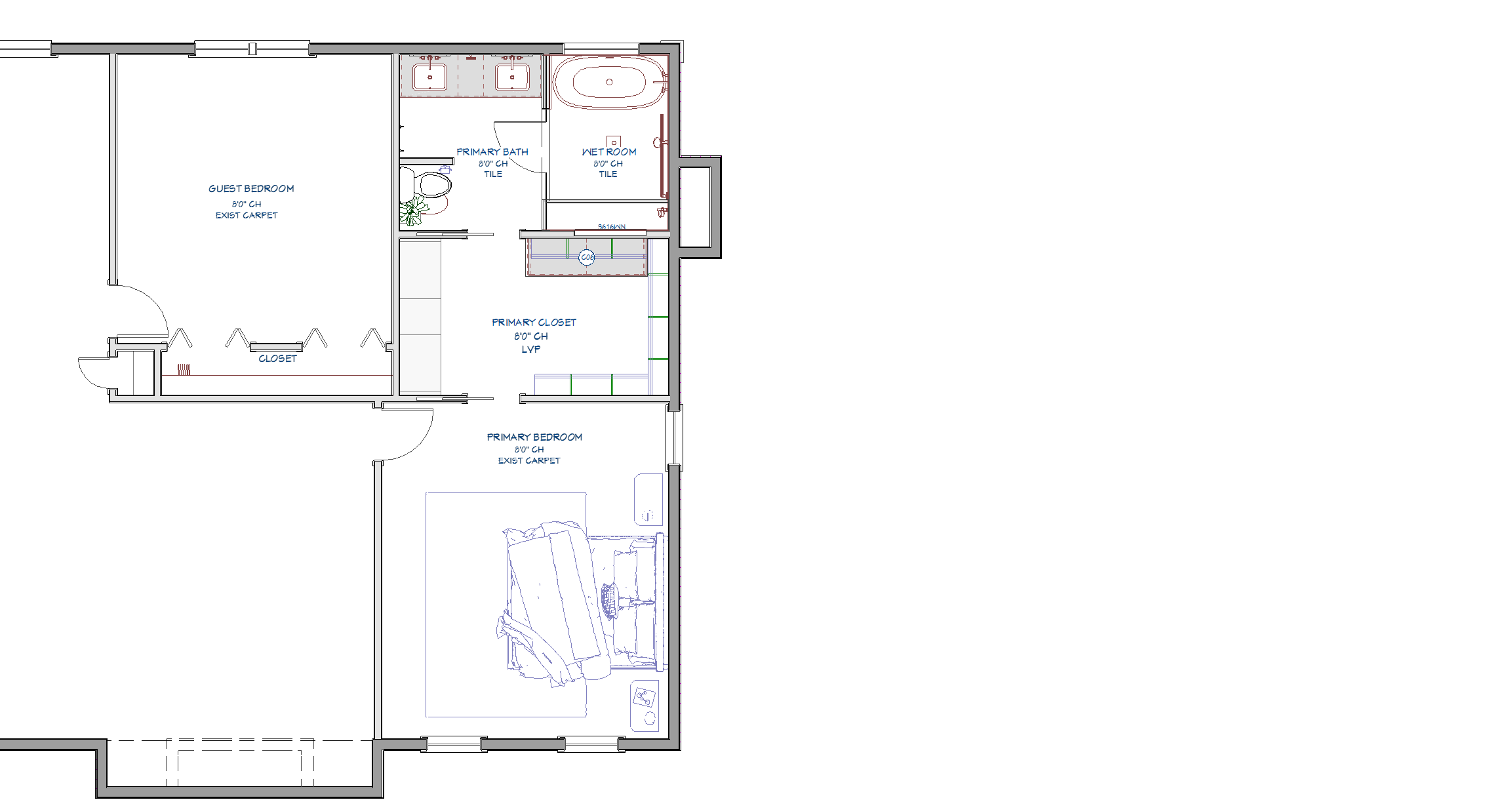 The clients wanting this change to their space had very different schedules, requiring the use of this space at different times of the day without disturbing one another. The goal for this space was to give them more functional closet space, while having the bathroom feel comfortably spacious. The overall hope was that the bathroom gave off a spa-like presence while being versatile for a variety of decorations as the clients’ tastes and preferences develop.