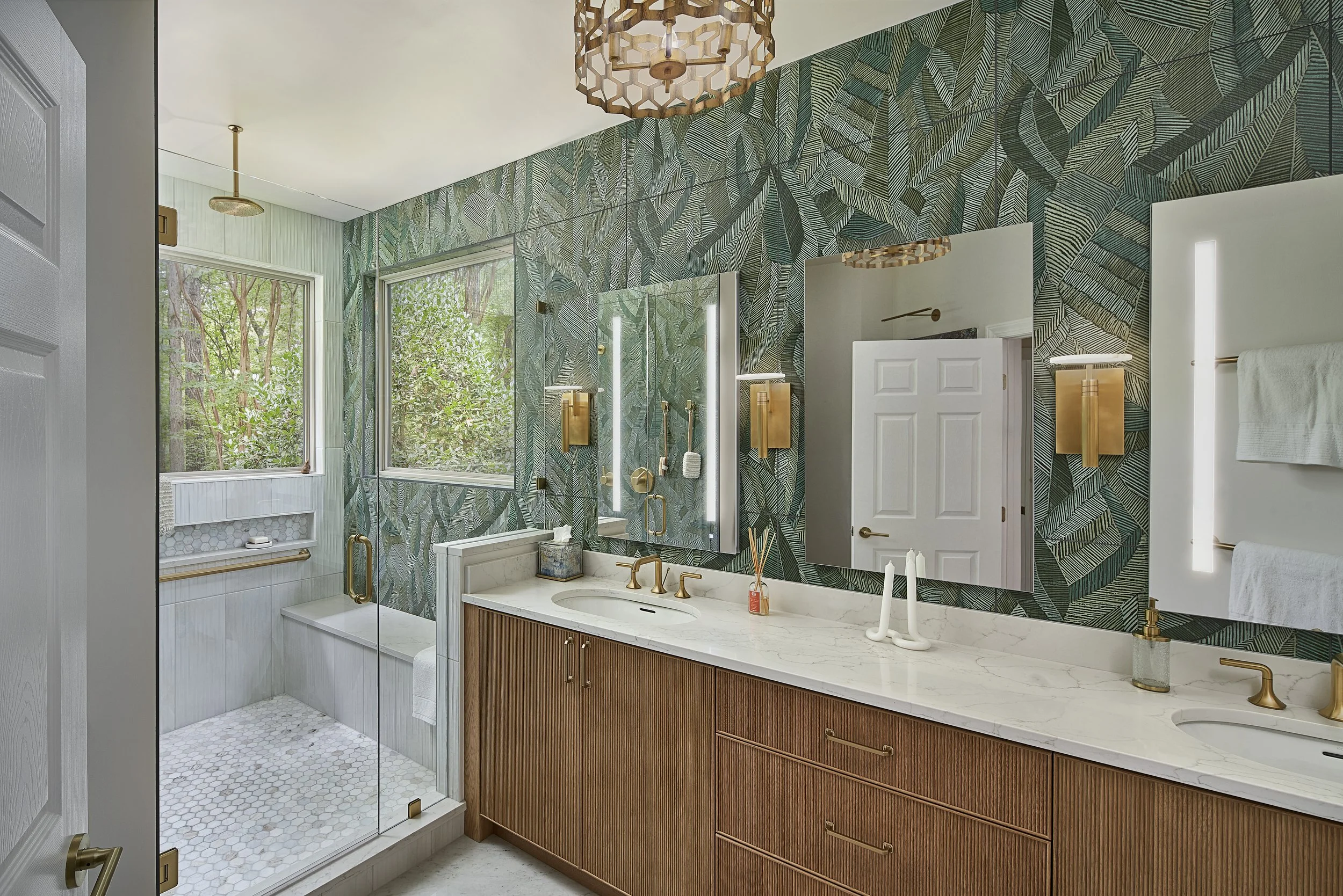 The goal for this bathroom was to maximize the space and increase or enhance the amount of natural light. The clients also wanted to have a unique twist to their space that reflected their personality. In this way, we were able to play with color, linework, and hidden storage as our primary concepts. This is personally one of my favorite bathrooms I have ever had the pleasure to design.